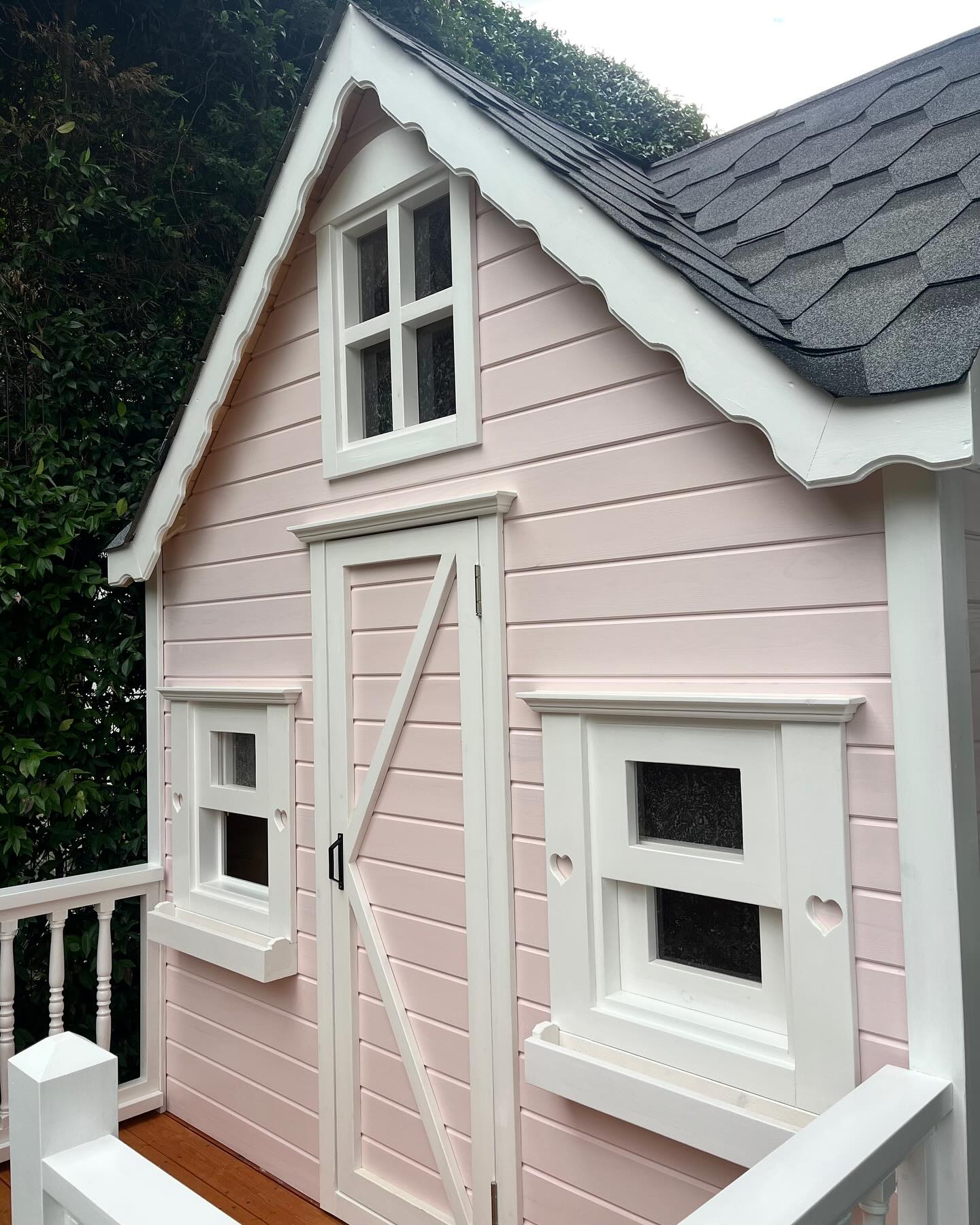 Give your child the backyard retreat of their dreams with this stunning handcrafted wooden playhouse, featuring a charming pink and grey two-tone design, vaulted ceilings, and a spacious wrap-around terrace. Built for years of imaginative play, cozy afternoons, and precious childhood memories.
