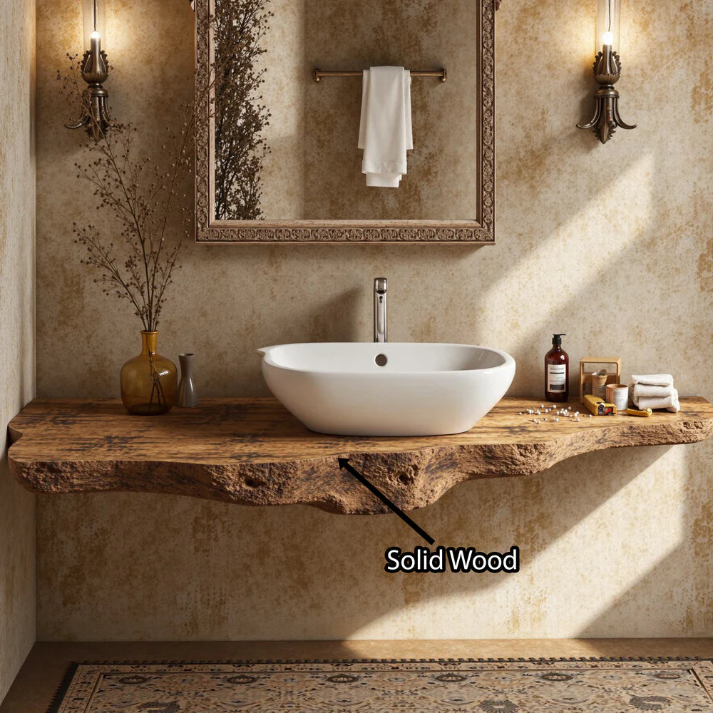 Elevate your bathroom with our Handmade Wooden Vanity, blending rustic charm with modern elegance for style and functionality.